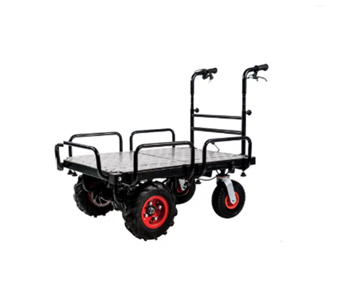 עגלת פלטפורמה עם ארבעה גלגלים חשמליים משמשת להובלת סחורות וציוד במגוון תחומים, כגון מחסנים, מרכזי לוגיסטיקה, אתרי בנייה, מוסדות רפואיים, אירועים, כנסים, ומרכזי קניות. היא מאפשרת ניידות מהירה ויעילה על שטחים רחבים, מקלה על העברת חפצים כבדים ומפחיתה את הצורך במאמץ פיזי, תוך שמירה על בטיחות ויעילות בעבודה.