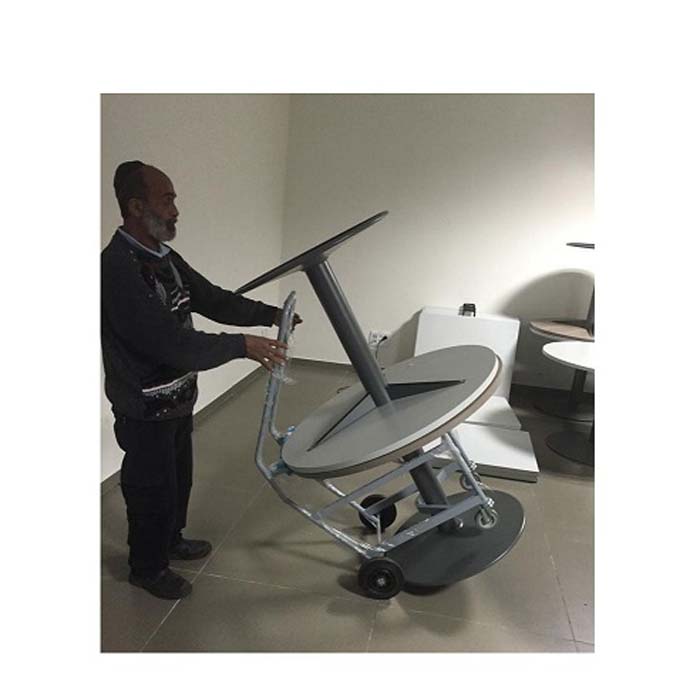 עגלת משא חזקה עד 200 ק"ג להרמה ושינוע שולחנות יצור מיוחד לפי שולחנות לקוח,