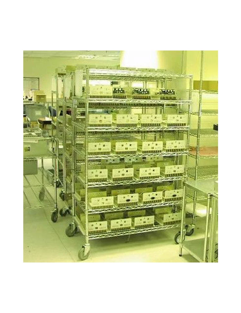 עגלות ציפוי כרום ניקל לחדרי הייטק, אכסון והובלת מוצרים בגדלים שונים.