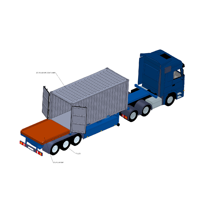 רמפה מקשרת למכולה לפי דרישה חדשה המיועדת לקשר בין המכולה לבין מפלס הפריקה כאשר הרמפה מקשרת יושבת על משאית הפריקה ,
