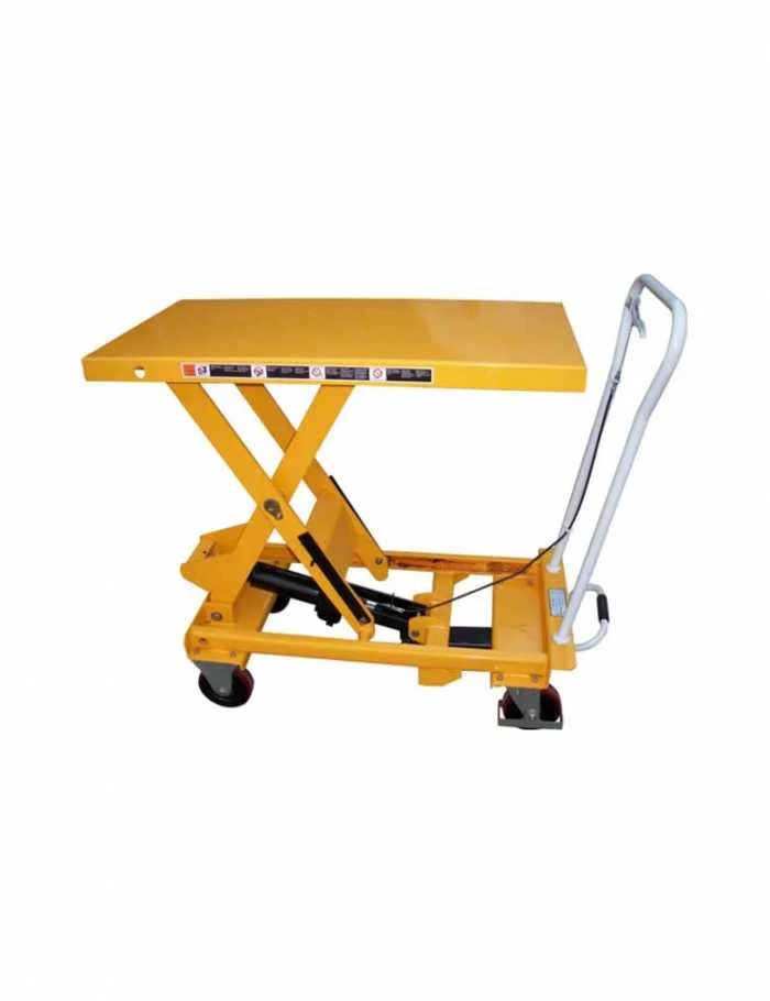 שולחן הרמה הידראולי בהפעלה רגלית, מיועד להרמה נוחה ובטיחותית של משאות עד 500 ק"ג, עם פלטפורמה רחבה והרמה עד לגובה 1000 מ"מ.